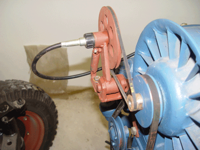hier auf der linken Abbildung ist der Antrieb für den Drehzahlmesser beim UT 082 dargestellt. So sieht er aus wenn das serienmäßig gefertigte Teil am Traktor angebaut wurde (funktioniert so aber nicht weil serienmäßig die Richtung des Gelenkwellenabganges in die falsche Richtung zeigt). Um die Sache nutzbar zu machen ist die Halterung für die Spannfeder umzuschweißen so dass man das Antriebsrad auf der Welle drehen kann!!! Die Möglichkeit, die häufig genutzt wird um die Antriebswelle am Gelenkwellenantrieb des Schaltgetriebes anzuschließen, ist nicht so gut weil man ja die Betriebsstunden des Motors bzw. auch dessen Umdrehungen messen möchte! |
