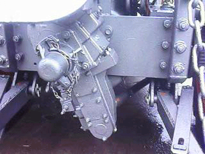 Oft hört man das der UT 082 Frontzapfwelle haben soll! Das ist so nicht vorgesehen. Der Irrtum beruht auf dem Bild zu sehenden Zusatzgetriebe mit Gelenkwelle die nach vorne (bis in den Zwischenachsbereich) gerichtet ist. Hier handelt es sich um den Antrieb für das Zwischenachsmähwerk der beim Abbauen des Mähbalkens nicht mit entfernt wurde. Das Getriebe wird auf das Zapfwellengetriebe aufgeschraubt und kann separat geschaltet werden (d.h. wahlweise normaler Zapfwellenbetrieb oder zuschalten des Zwischenachsmähwerkes). Das Zuschalten erfolgt über einen Zugschalter (auf dem Bild kleiner hervorstehender Hebel unter der Kette). |