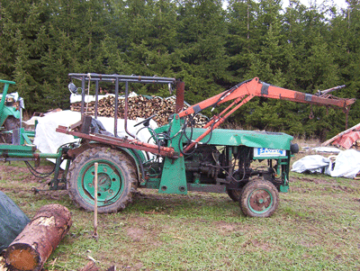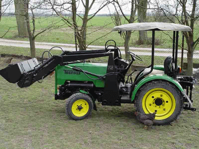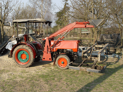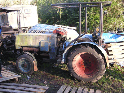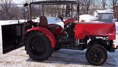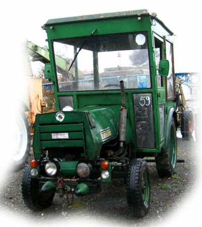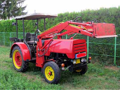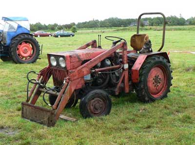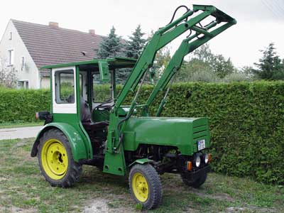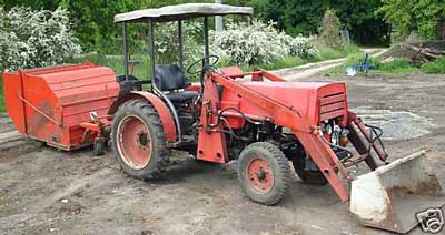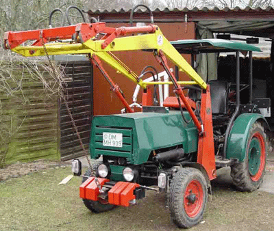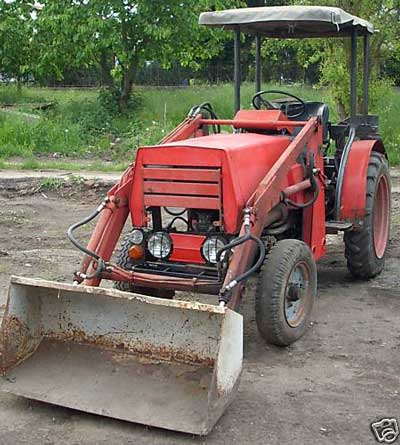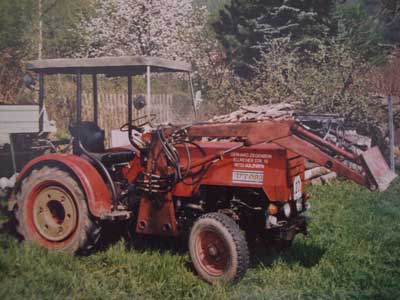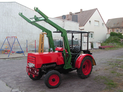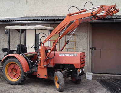 UT082 mit Frontlader T100 mit abgesägten Kotflügeln (hinten) |