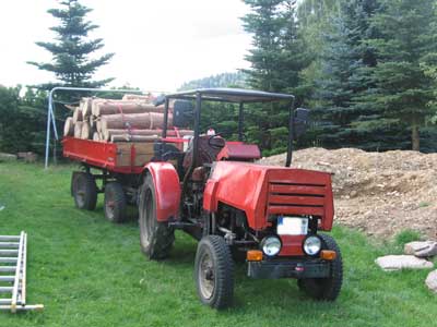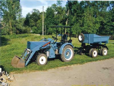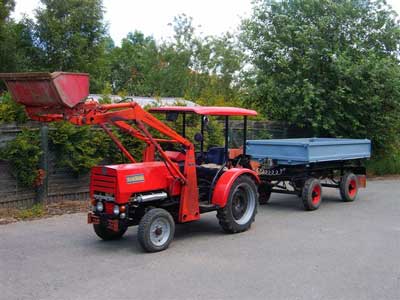 UT082 mit Frontlader T100 und leichtem Umbau verlegter Auspuff ist leider etwas schlecht zu erkennen interessant jedoch die Variante des Multicaranhänger (Muldenkipper mit Zwillingsbereifung - solchen hätte ich auch gerne) |